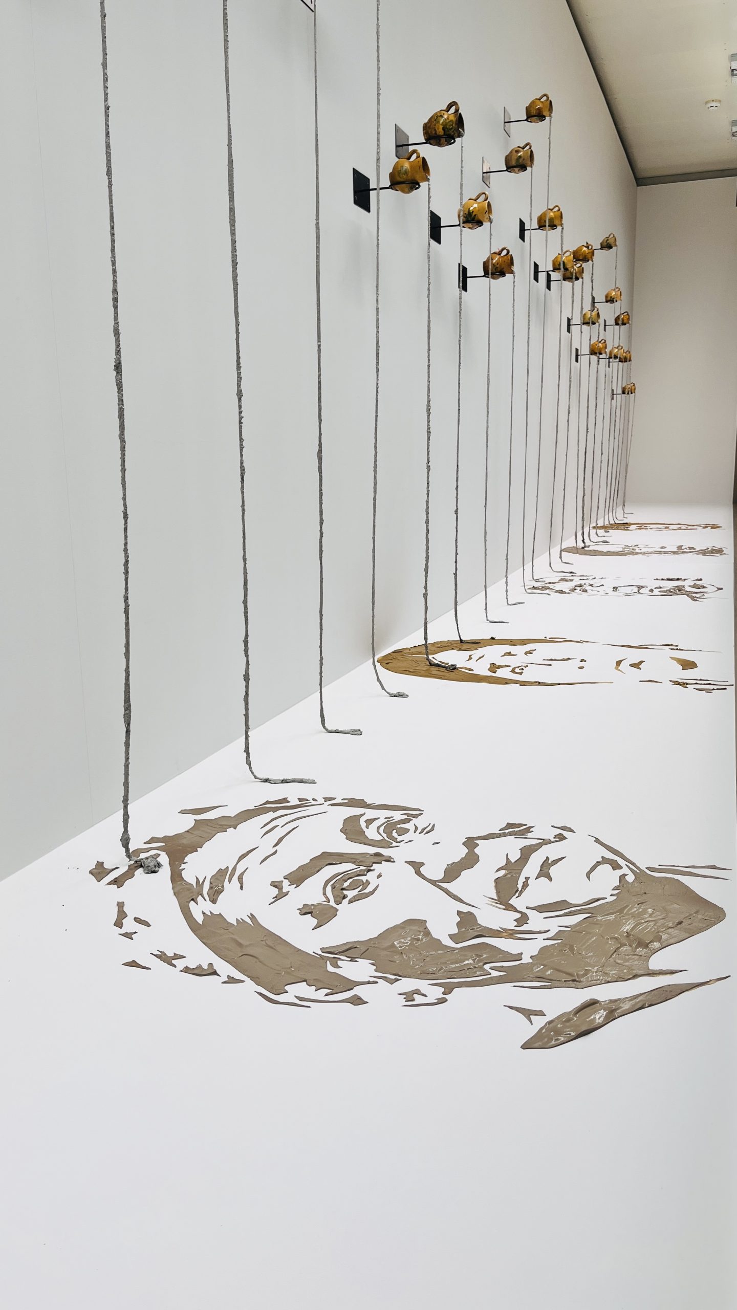 De estas cerámicas chorrea cemento como si fuera agua que corre, pero que se endurece en el camino. Al caer al suelo, el cemento es soportado por los rostros de varias mujeres indígenas. Estos retratos están hechos con barro de Seto. Varios de los chorros de cemento que caen tienen fragmentos de mapas de la prefectura de Aichi y de Seto, para agradecer a este territorio por resistir tanto a la idea de progreso.