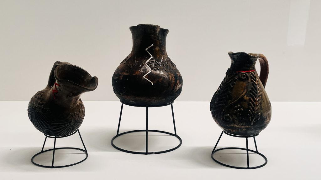FBB: Algunas de estas cerámicas están “remendadas” con hilo, una clara referencia a la tradición textil maya.